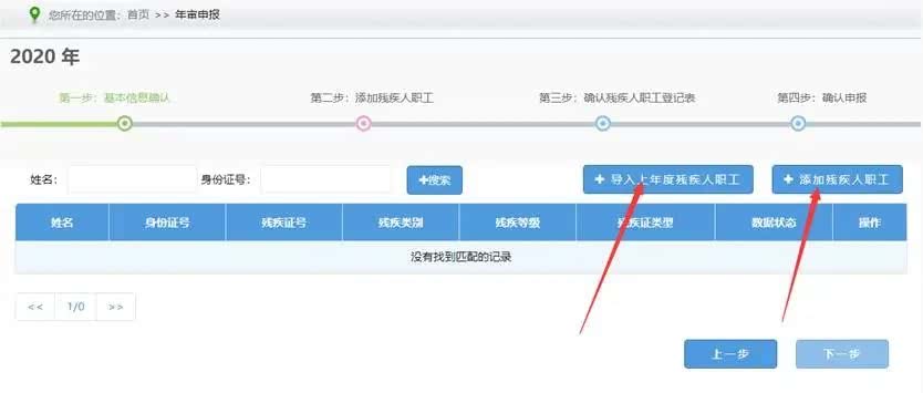 第四步:点击“导入上年度残疾人职工”或“添加残疾人职工”信息,完整录入所有残疾人职工信息。