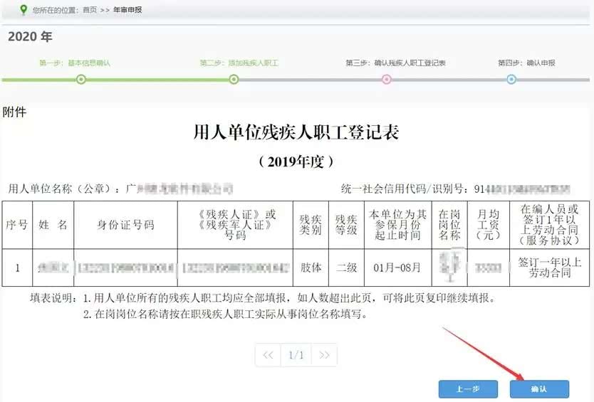 第五步:对系统生成的《用人单位残疾人职工登记表》进行核实确认。