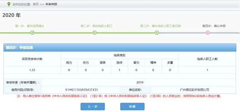 第六步:用人单位申报信息后,系统根据《粤财社〔2017〕51号》实施办法标准自动计算用人单位实际安排的残疾人数。