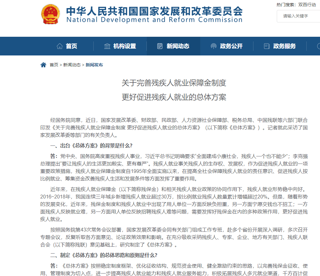 2020年残保金又出新政策关于印发《关于完善残疾人就业保障金制度更好促进残疾人就业的总体方案》的通知