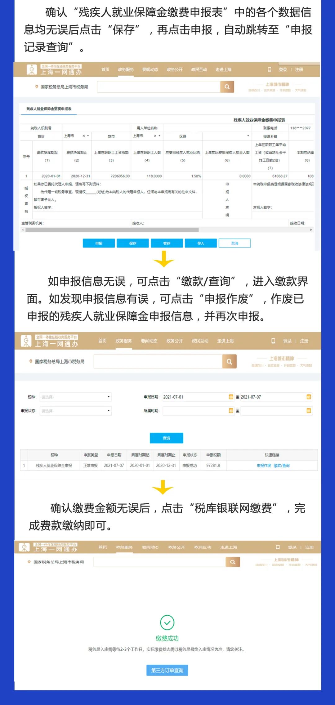 相关文章地址:2021年上海市税务发布2020年度残疾人就业保障金缴费指南,你关心都在这里!