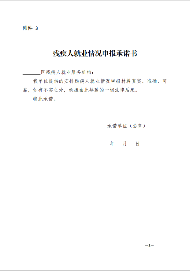 3、《残疾人就业情况申报承诺书》