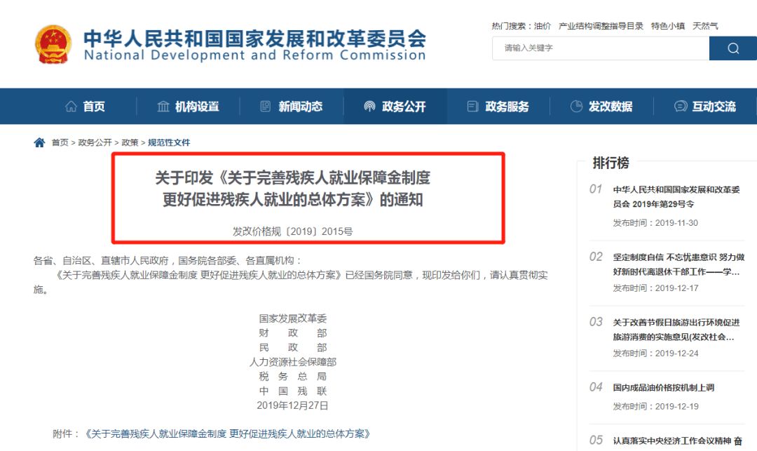 发改委等六部门印发《关于完善残疾人就业保证金制度更好促进残疾人就业的总体方案》(发改价格规[2019]2015号),明确自2020年1月1日起:对在职职工人数30人(含)以下的企业,暂免征收残保金。