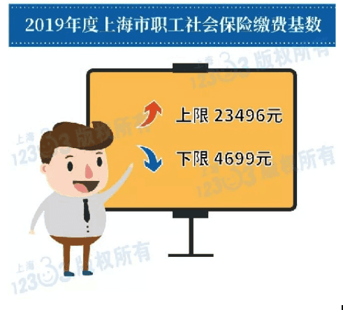 自2019年4月1日起,上海市2019年度职工社会保险缴费基数上、下限分别调整为23496元和4699元。2019年社保缴费年度是2019年4月1日至2020年3月31日。