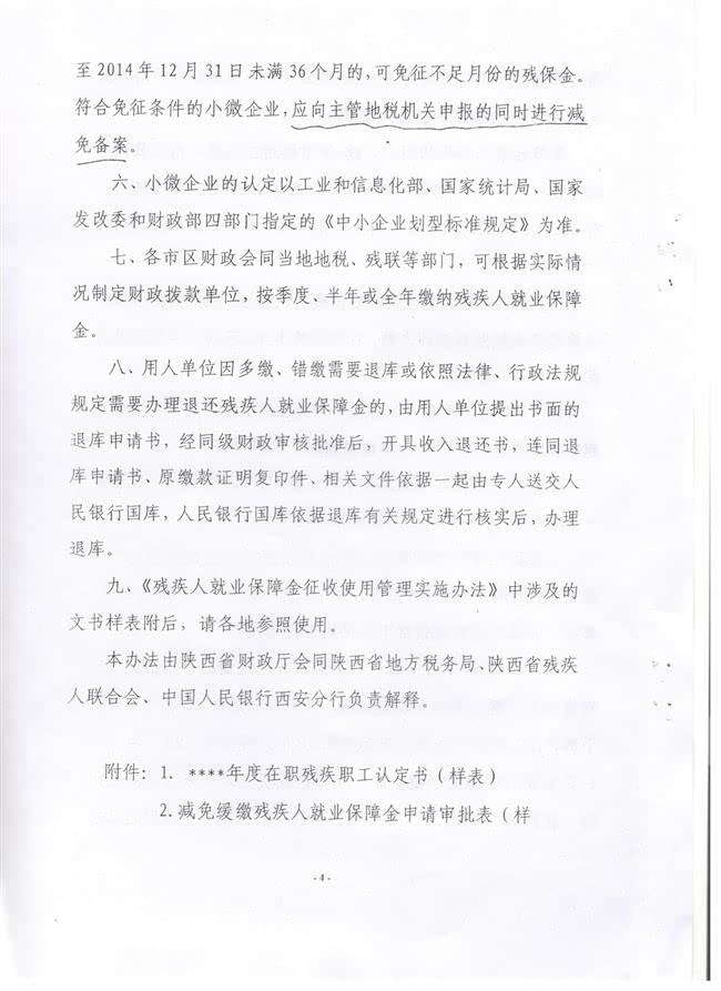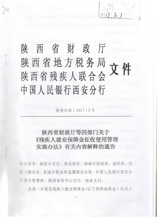 陕西省财政厅等四部门关于《残疾人就业保障金征收使用管理实施办法》有关内容解释的通告