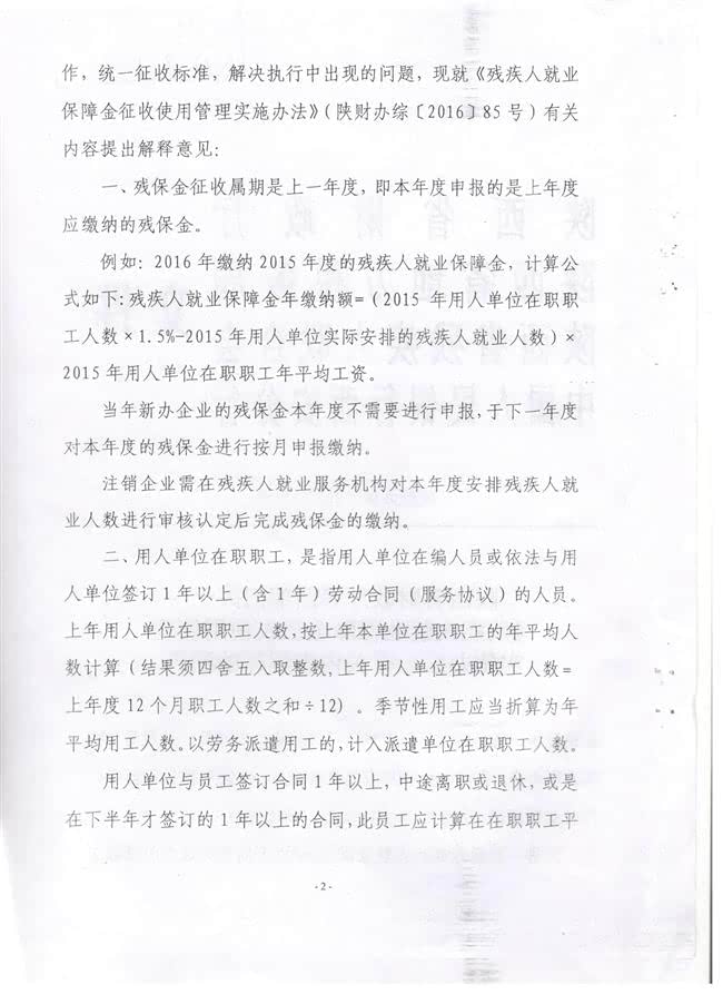 陕财办综[2016]85号《陕西省残疾人就业保障金征收使用管理实施办法》